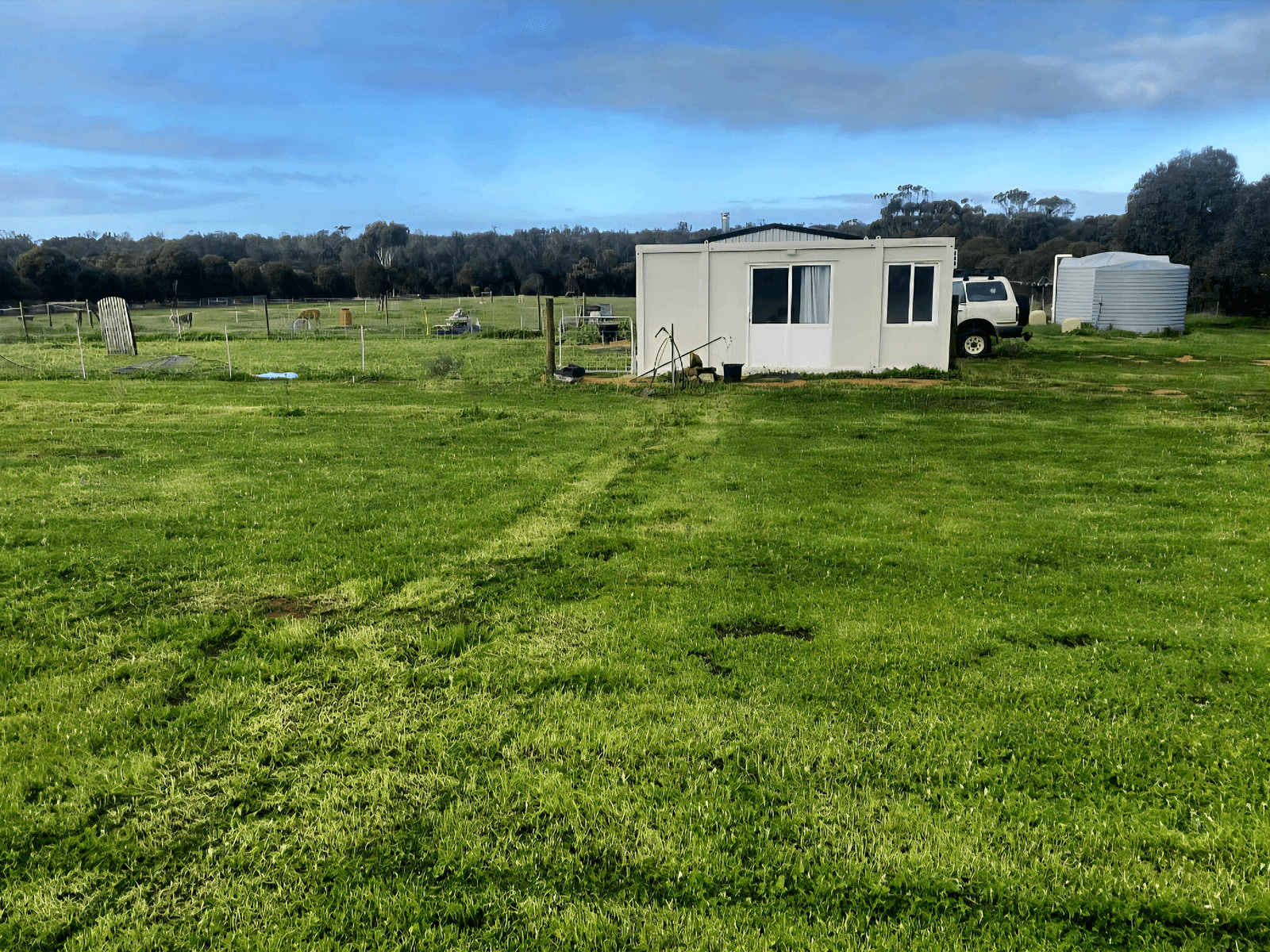 The shed itself is approved as a shed but has added surprises inside (See Pictures) This lifestyle property is only 10 minutes from Katanning which is currently thriving even more due to Ausgold advancing with its projects. The inside of the shed we divided into rooms which has cupboards and a sink (see pictures), extra windows and mostly floored with hybrid flooring. There are PowerPoints throughout which is run by a 15 amp inlet. (Installed by electrician) Plug in the generator or off grid setup. There is underground power passing the property meeting at a Dome between the properties but not run to the buildings. This sale comes with a 7kw Honda generator. The shed also has aircon/heating. There is also a nice wood fire you can have installed. Transportable: